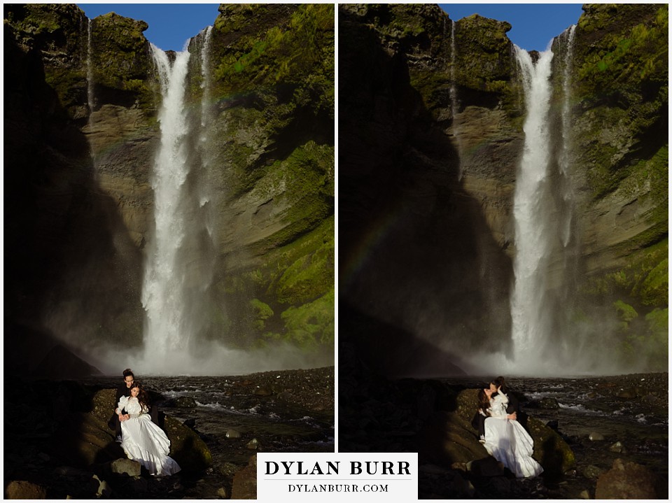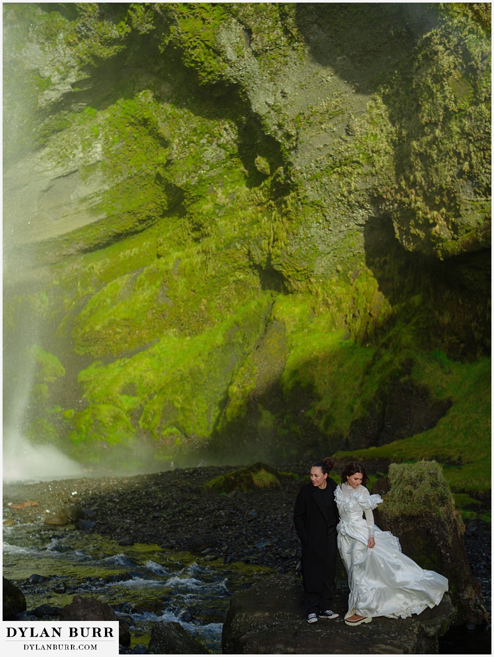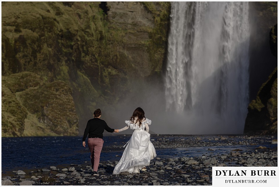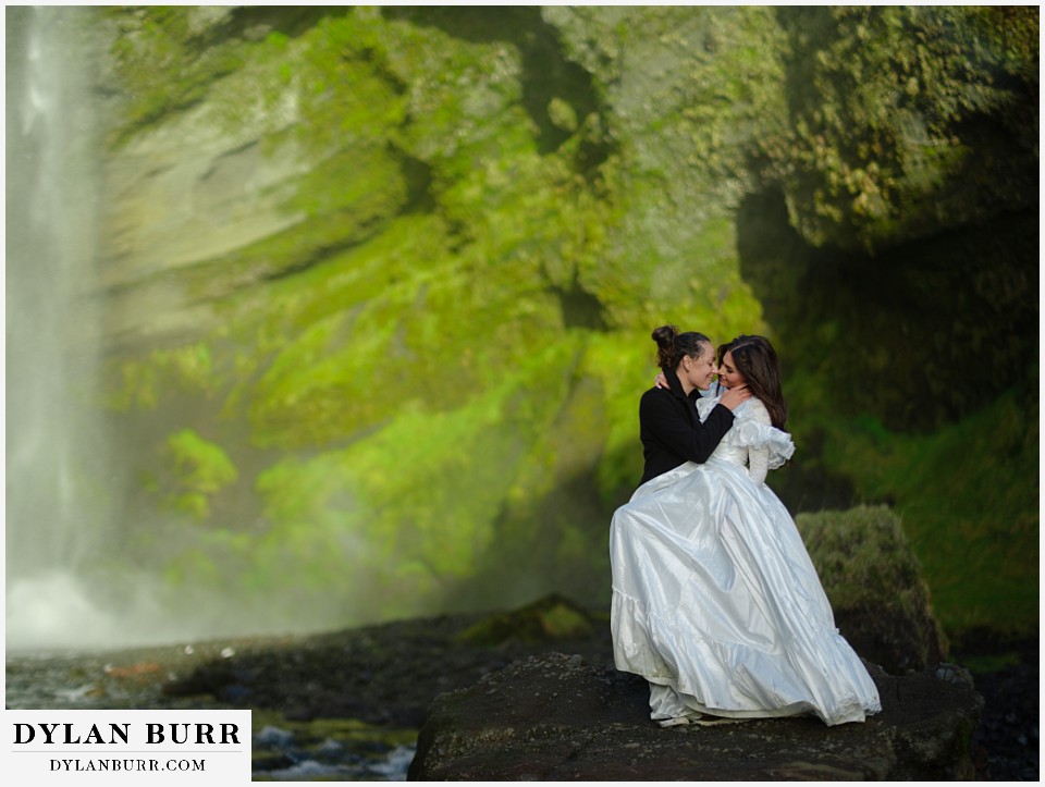 Just a short walk away, Kvernufoss offers a more secluded and intimate experience. This waterfall allows you to walk behind the cascade, creating incredible photo opportunities and a sense of privacy ideal for elopements.