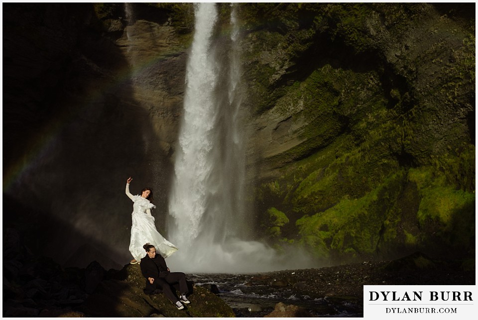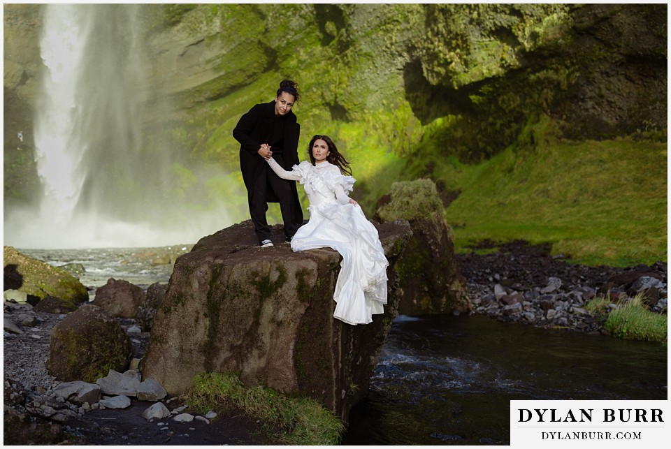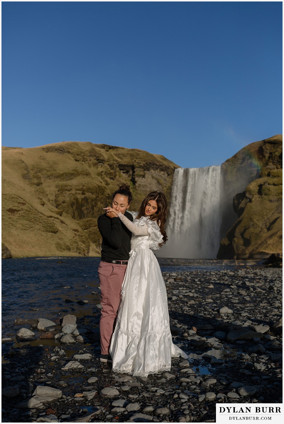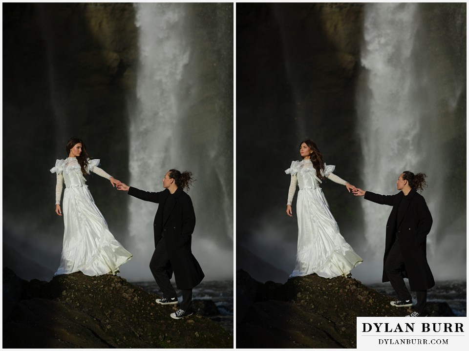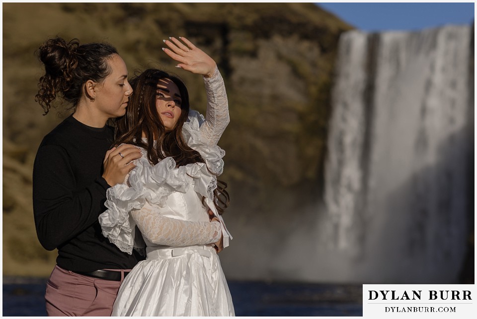 Just a short walk away, Kvernufoss offers a more secluded and intimate experience. This waterfall allows you to walk behind the cascade, creating incredible photo opportunities and a sense of privacy ideal for elopements.