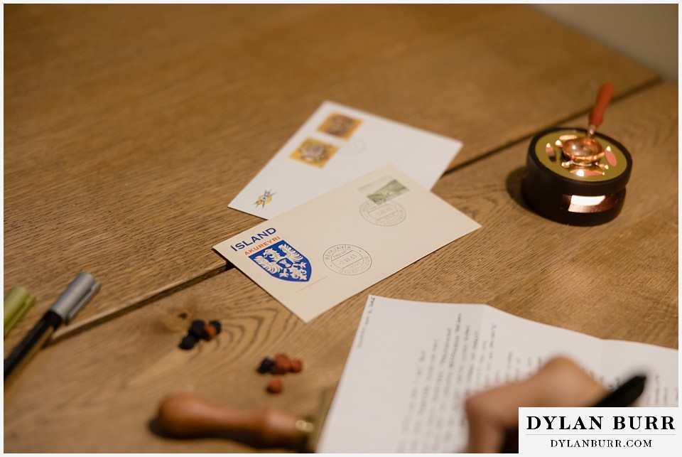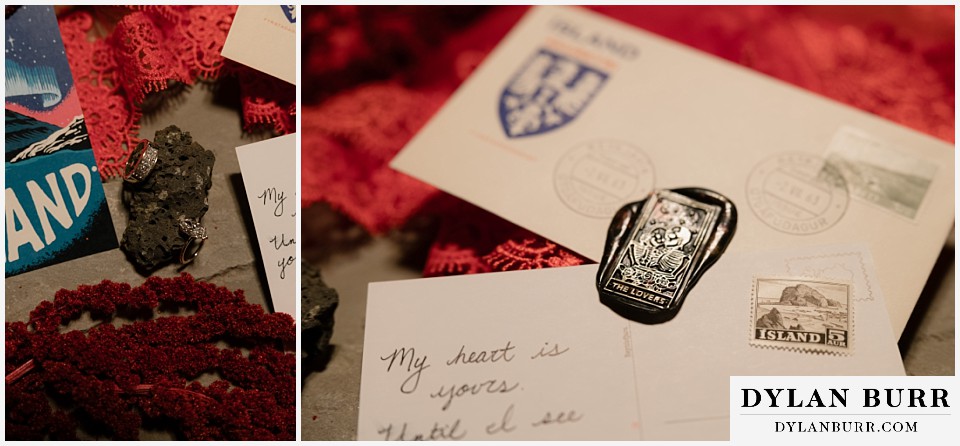 The end of the day concluded with a cozy vow ceremony at their Airbnb outside Selfoss. They both wrote their vows in letters and sealed them with a wax stamp of "The Lovers" tarot. It was a very sweet and special moment. The perfect way to end a pretty perfect day.
