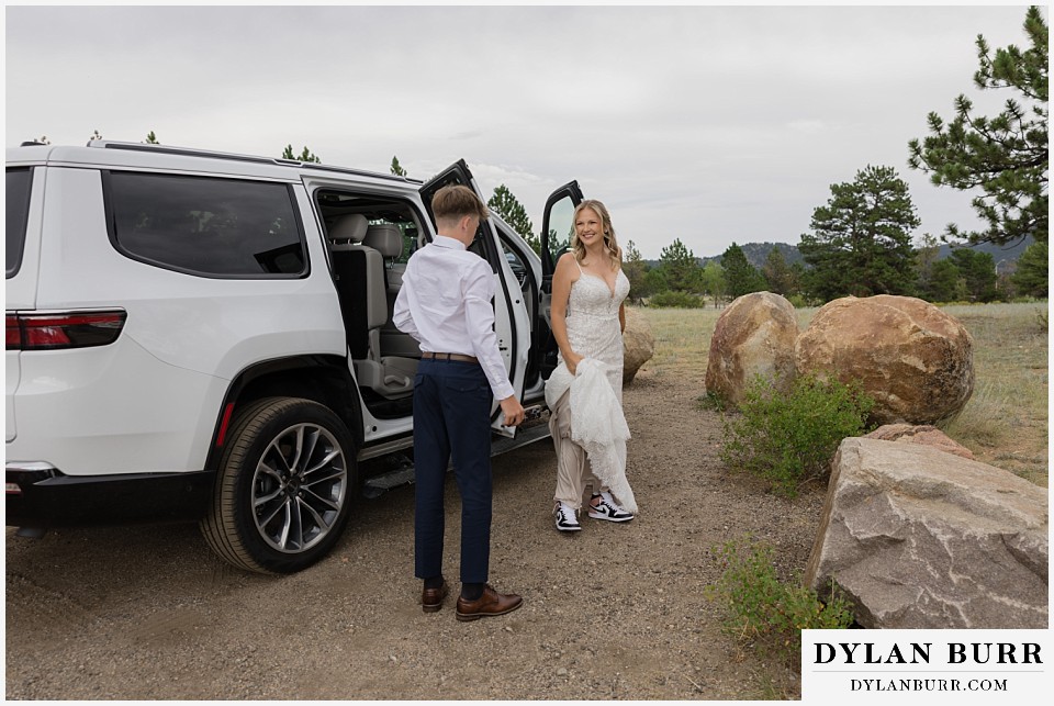 The day started slow and intentional with getting ready at a cozy Airbnb just outside of Estes Park. Having a private space to relax, get dressed, and take those quiet pre-ceremony moments together sets the tone for an incredible elopement day.