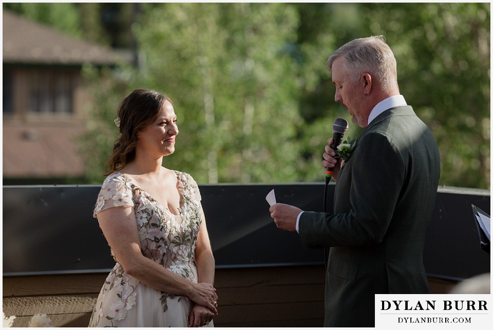 There is something incredibly special about a late summer micro wedding in the Colorado mountains. This intimate celebration took place on the outdoor patio deck at 10 Mile Music Hall in Frisco, Colorado, followed by golden-hour portraits near Lake Dillon.